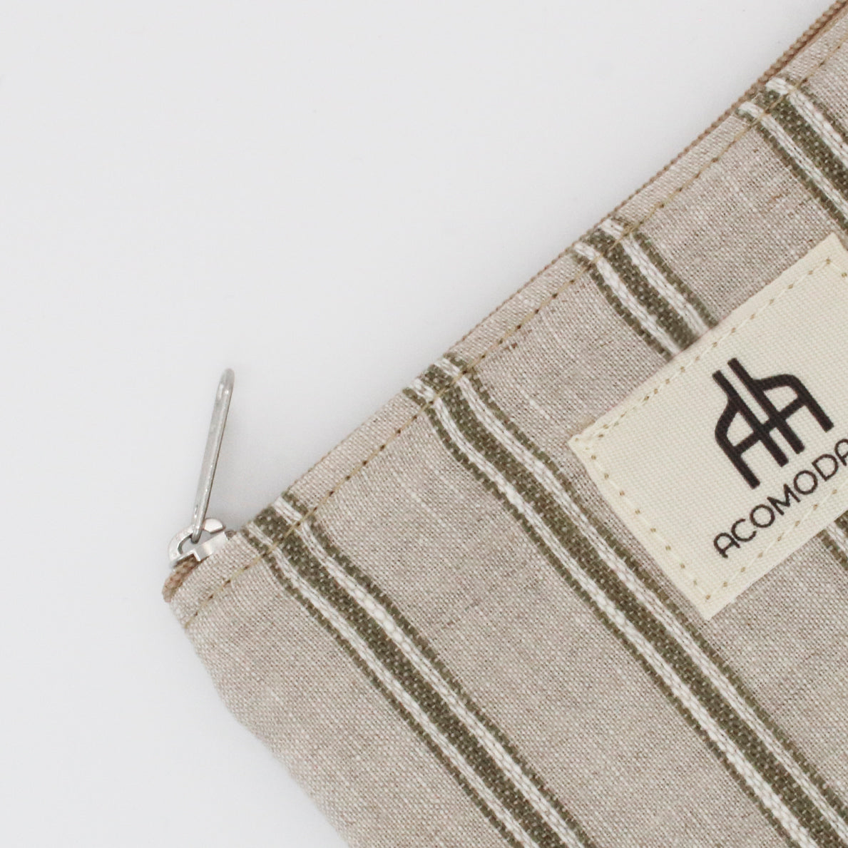Confeccionado en lino. Forro 100% algodón en su interior. Cierre con cremallera.