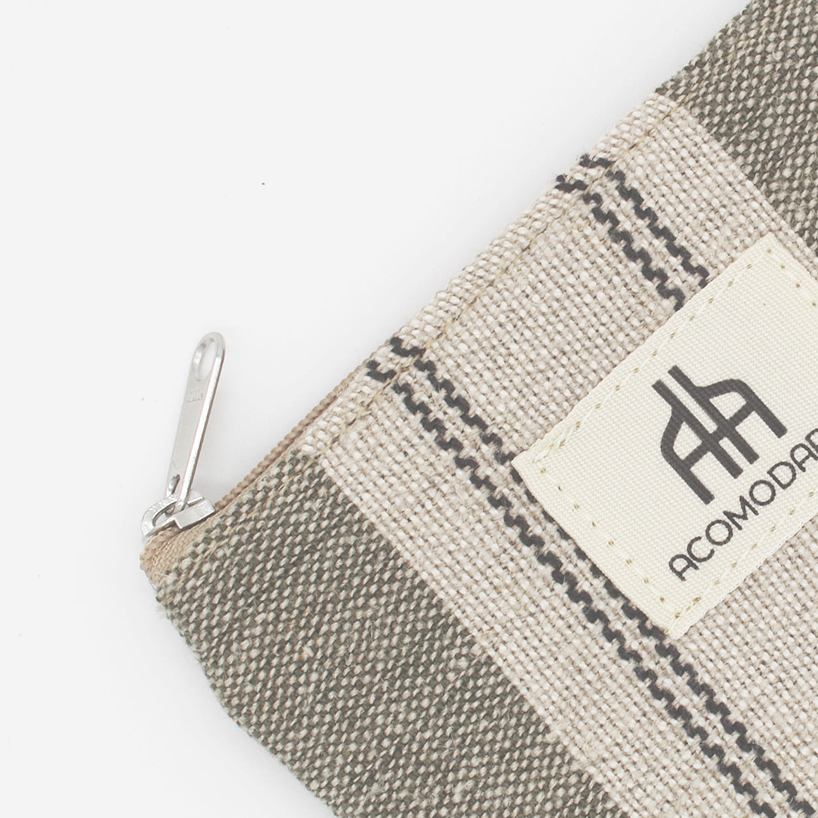 Confeccionado en lino. Forro 100% algodón en su interior. Cierre con cremallera.