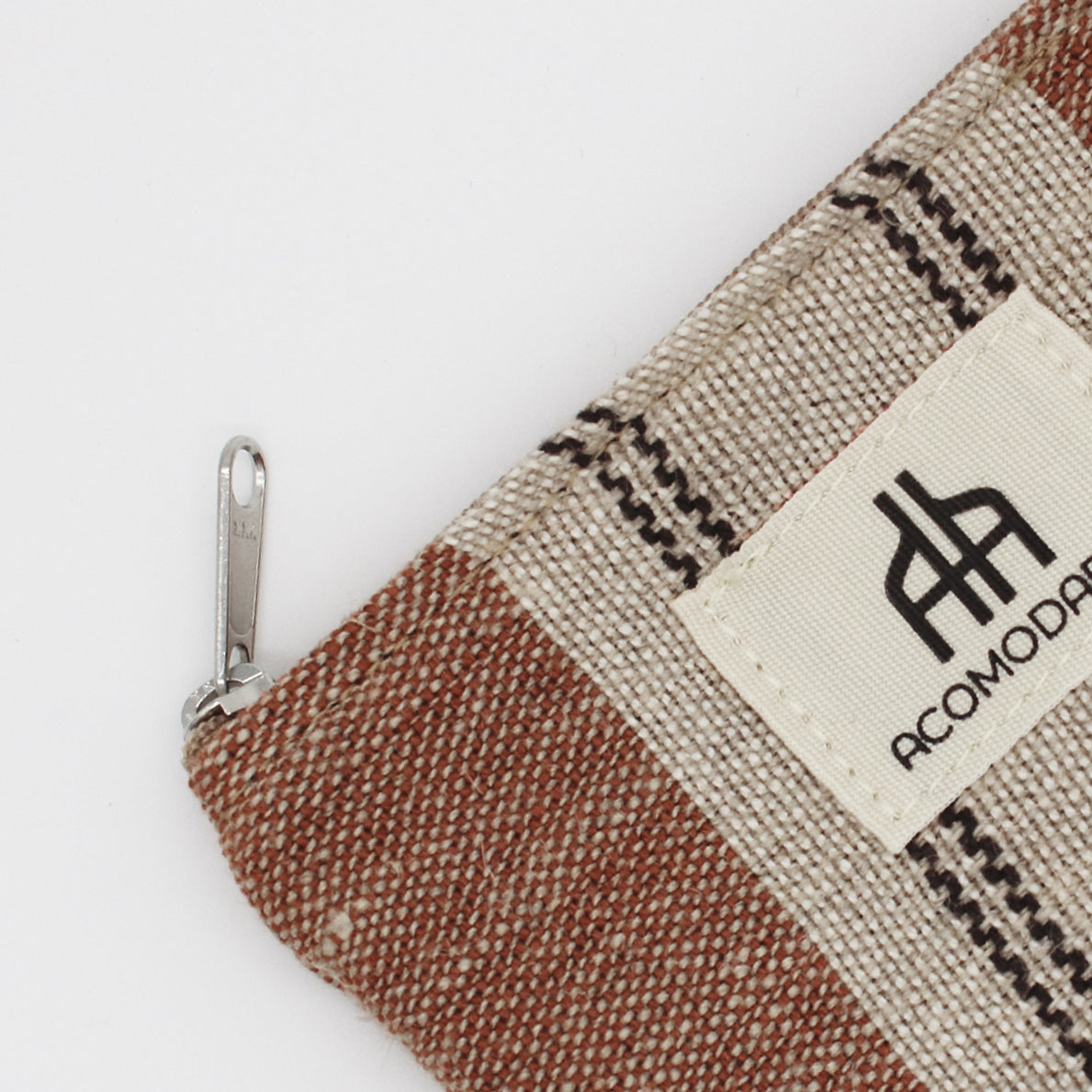 Confeccionado en lino. Forro 100% algodón en su interior. Cierre con cremallera.